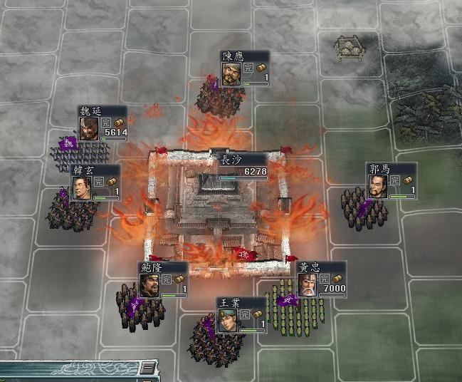 迎击的部队被消灭后接下来便是攻城,众一骑部队的攻城能力可以让你瞠目结舌,可以和冲车媲美。他们全部围住敌城用火计,火计成功的效果与人数无干,只和智力相关,因此每次成功后城墙耐久度下降100到150不等,由于诱饵部队数量众多,不用两三回合,一个普通的城便被烧完了。想像一下,总共才不过10个骑兵在放火,威力可真大啊。