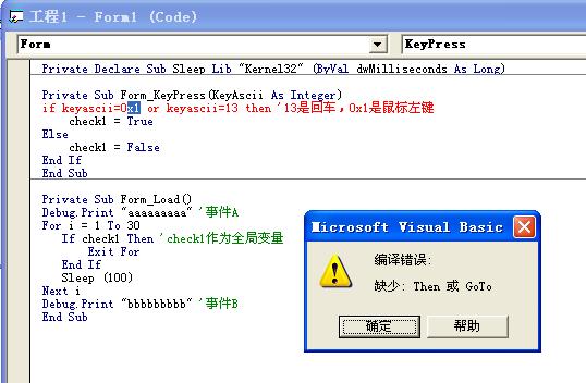 If KeyAscii = 13 Then '13是回车
