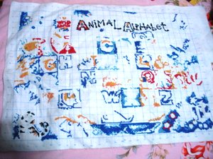 狠狠地绣了绣,于是,斑马的脑袋已经出来了。不要以为没多少哦,下面的白色都已经填上了呢。