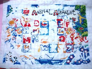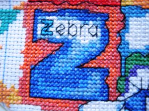 斑马的草也绣了绣,果子还差一种颜色,之后就可以勾边了: