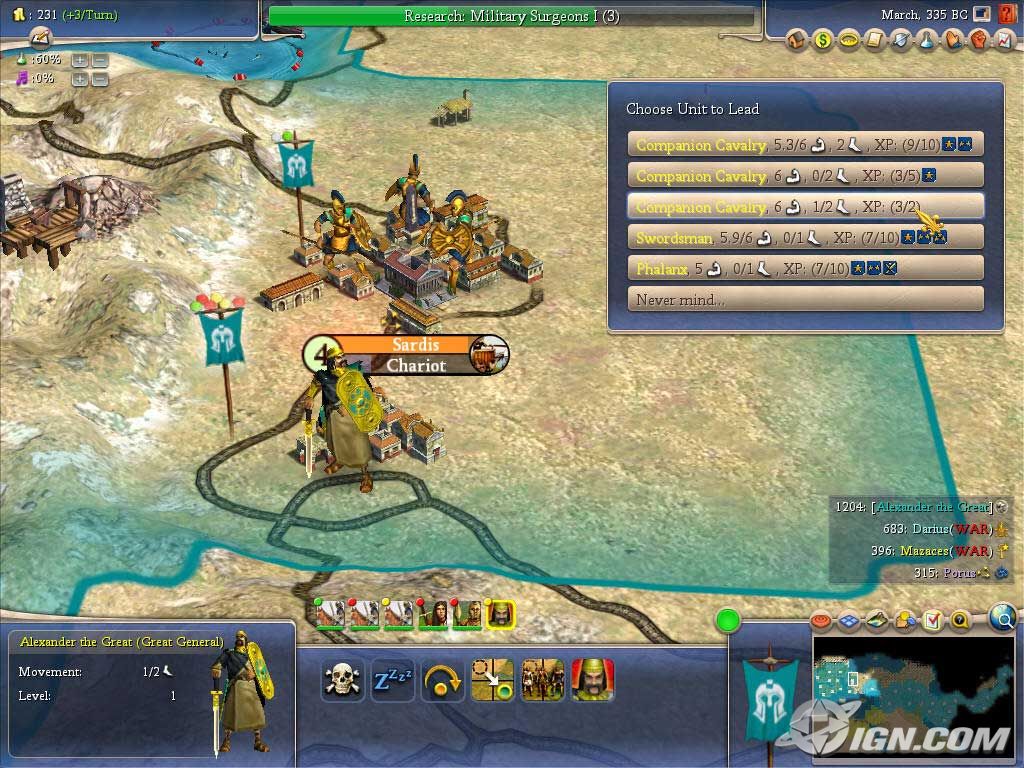 - 作为军事统帅单位的亚历山大不会阵亡, 仅在 "受伤" 后会消失数回合