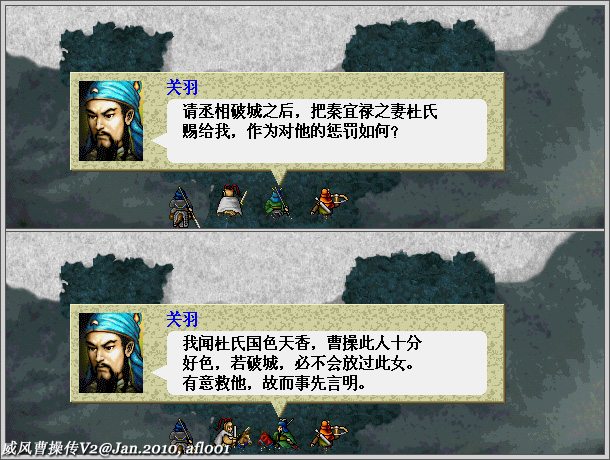 真不好意思,本来说过以后再也不做剧本的,这次又做了一个,食言了。没办法,这次中文版出来实在太馋人了,一时心痒难耐,把持不住……不过这次真的、绝对、一定、保证是收山之作了,因为afl001一直以来坚持认为,剧本应该是求精而不求多,一个剧本制作者出太多的新剧本只会使剧本的整体质量下滑,所以即使以后san11出来日文PK、中文PK,afl001也只可能会整理加强以前出过的剧本「周郎定江东」、「三军夺曹」和这次的「马超复仇战」。