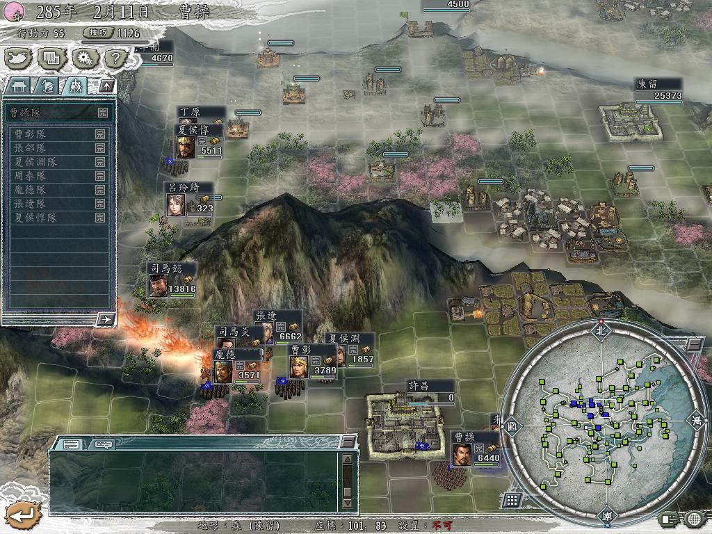君主曹操,拥有许昌,麾下32名武将:贾诩、郭嘉、乐进、郭淮、夏侯渊、夏侯惇、夏侯霸、许褚、荀彧、荀攸、钟繇、徐晃、甄氏、曹昂、曹洪、曹彰、曹植、曹真、曹仁、曹沖、曹丕、曹髦、张郃、张辽、陈羣、程昱、典韦、卞氏、庞德、滿宠、刘晔