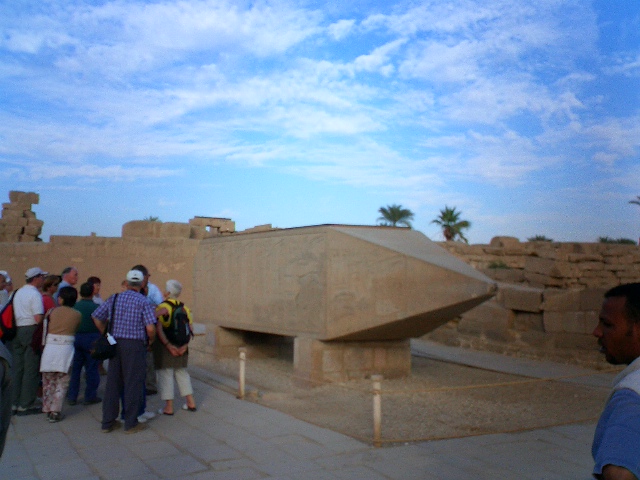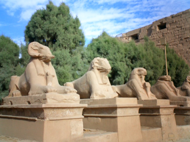 最让卡纳克名扬天下的,当然是阿蒙神庙的多柱式厅,共有16行134根巨石圆柱,其中有12根超过20米高,柱顶是纸莎草花式样。这些石柱历经3000多年居然无一倾倒,顶端内壁上记载着古埃及神话传说和当时人们日常生活的图形文字甚至连颜色也未褪去,确实令人叹为观止。石柱的底座占了大厅整体面积的一半以上,这种强烈的压力使人感到渺小和卑微,也许这就是人在神面前应有的感觉和态度罢。