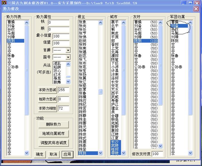 » 三国9PK版剧本编辑的时候怎么设置军团的?