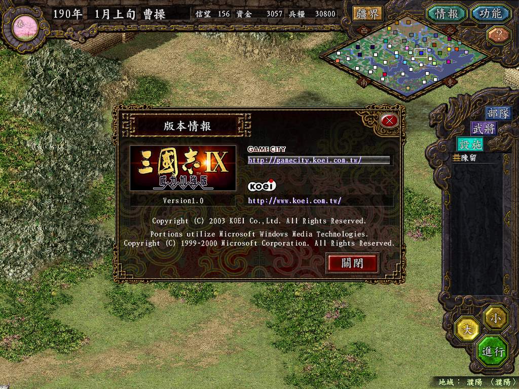 我用的作弊器是rangzh兄编的三国志IX PK1.01版战斗作弊器Version 1.2,每次使用时就弹出来下面这个画面