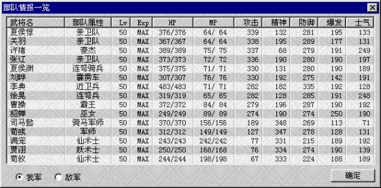 偶的梦幻阵容已经快浮出水面了,今天上午已经招出了12级的司马庞德和曹彰,可是只经过麦城救援战一战关羽就变成了17级,我并没有人升级,大概是3个12级的加入后平均等级提高的缘故吧。打完江陵之战后,为了赶在赤壁之战2基本把武将升好,把江陵之战的经验值榨取到极致,江陵之战练成6个统帅,3个好运,5个敏捷,练成了14个果子,本来还可以练成一个精神果,结果有几个回合忘了叫军师使用策略了。目前已经把属性基本上提高的有李典SAAAB(提升攻击、精神、敏捷),张辽SAAAA(精神、敏捷),司马SAABC(统帅、敏捷),徐晃SAAAB(敏捷),于禁SAAAB(统帅),貂禅SAAAB(统帅、士气,现在还在5级,计划把精神力提高到A,她太容易被烧死了),夏侯渊SAABB(统帅、敏捷,失误,培养张合会更好一点),荀或SABBB(统帅),满宠SAABC(统帅),贾诩SAABC(统帅),刘晔SAAAB(攻击、精神、敏捷),许诸SSAAC(敏捷),计划把关羽从17级把敏捷升到A,目前还差4个敏捷果和9个智力果(为了控制等级,我到江陵之战为止还是只有荀攸和满宠会补给,智力果基本没练,但智力果应该是最好练的),再加上曹操、夏侯敦和荀攸,15人阵容的最终各项数值应该会是相当高了。我的果子数目几乎完全刚刚好,除了一个经验果,所有果子一个没有多出来,乐进还是3级,如果宝物练满有余裕的话还可以考虑培养培养乐进。