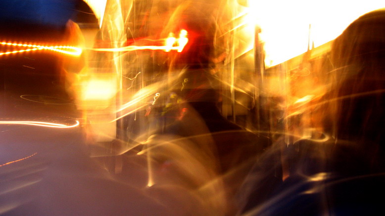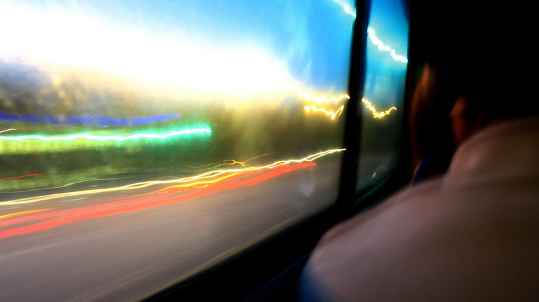夜晚回家的车上