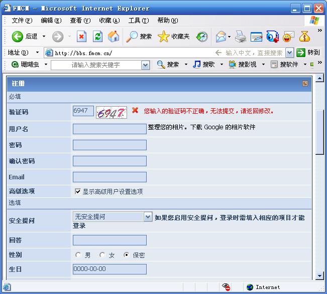 2:如下,注册时,无论如何,验证码均不正确,除非我眼睛瞎了.