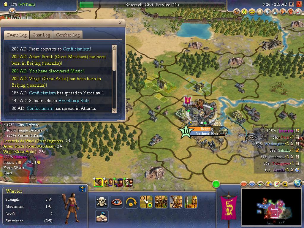 文官制度研究出来了,当然是立刻革命实行官僚制度,首都+50%锤子+50%金,这下首都建奇迹的速度大大加速了: