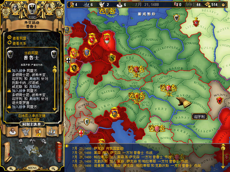 7、当然可以退盟,但是要减稳定呀。本来好好的,但是就因为读一次盘就莫名其妙的被减稳定,这也太让人不愉快了吧。而且这游戏加入同盟也不是那么容易的,特别是如果要当盟主就太麻烦了,如果不是盟主,战争中得到的利益就太让人失望了。欧洲那些国家都是天主教的,就算有借口,也要减一的稳定,好郁闷呀。你的卫星国是怎么搞的?外交?