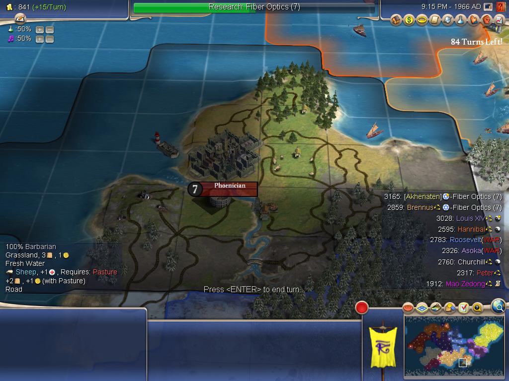 注意右下角的分数,可怜的伊丽莎白,游戏才开始不到1000年就被野蛮人灭掉了