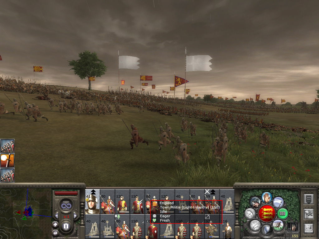 雷达地图上还是可以看出一些列阵和行军的内容的。因为欧洲多数国家不但兵种类似,且战法也差不多,所以不是很好看。与蒙古人作战就是两种不同理念、不同作战方式、不同军事配备、不同纪律素养的军队之间的战斗了(当然后期还有铁木尔)。所以以后发第二章《抗击蒙古入侵》时会尽量多几个阵形鸟瞰。遇有大战会把各个作战阶段截几张下来。