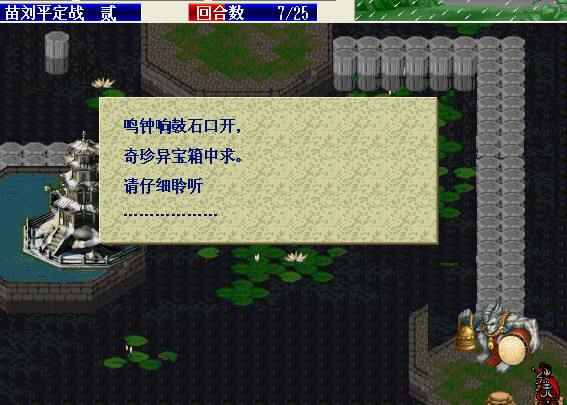 让牛皋或岳飞与高宠见面,加10。全灭,加5分。如果没有全灭,与高宠见面的下回合,战斗会结束。最好在与高宠见面的回合全灭。见面和全灭都算救出高宠,与救汤怀不同。