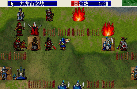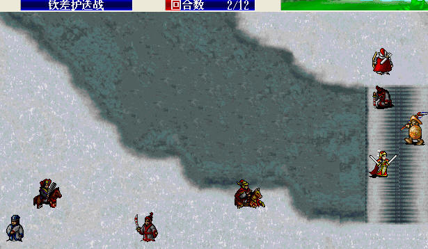 第4回合,诸葛、牛皋逐步向中间移动,第5回合加能力,保证在第6回合给高宠加士气、敏捷或防御,或救高宠。然后高宠给自己粮食或经验果,诸葛和牛皋放石头或吹风,快速杀敌,尽量先干掉最后出来的那两辆,他们有沥青枪的功能。最后,如果有些铁滑车躲在诸葛牛皋够不到的地方,需要高宠过去挑掉。消灭铁滑车后,诸葛牛皋加移动,向下。如果前面铁滑车调动的不顺利,第7回合高宠躲的少,S/L保命。