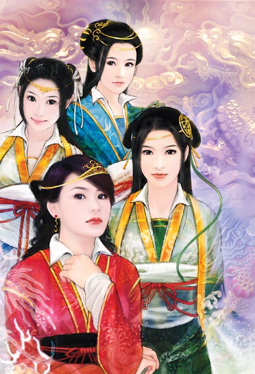LZ可否用下图里四女(我估计她画的是玄幻小说<异侠>里四个海龙王的公主)的造型为虚竹整四个侍女的头像?