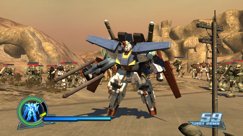 游戏系统承袭《无双》系列作的风格,玩家将驾驶各自的MS与大量的敌军进行战斗,体验“一机当千”的爽快感。具备成长要素,驾驶员与机体的关系就如同以往系列作中的武将与武器般,会随著游戏的进行而不断强化。另外并加入了按╳钮即可发动的冲刺(Dash),强化速度感的表现。