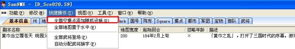 可如果在别的官方剧本(比如讨伐董卓)中如何可以使一开档就使地图上有那些城塞和建筑呢?