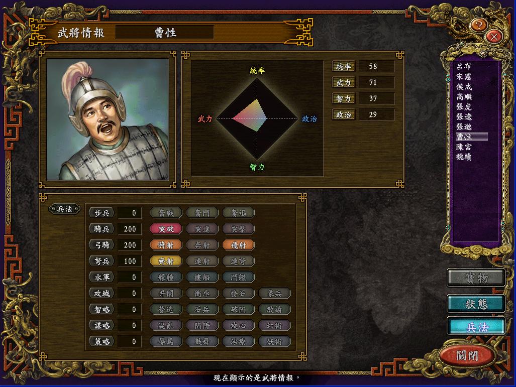 标题: 豪杰同台,诸侯并立剧本吕布势力麾下武将全分析, 用了名将补丁,不过熟练度还是原版的没改