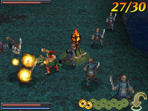 除了硬碰硬的刀剑砍杀之外,游戏中也加入了「妨碍轮盘」系统。战斗中只要收集打倒敌人后掉落的金钱,就可以用来转动妨碍轮盘,施展轮盘所标示的妨碍招 式,象是提升我方士兵能力、让敌人冻结不能动弹的「寒波到来」、引发大地震的「大地振动」、妨碍敌方视线的「暗云召唤」..等等。当与敌方头目对战时,抓 准时机施展妨碍招式将有机会一口气逆转局势,让对战的变化与策略性更为丰富。