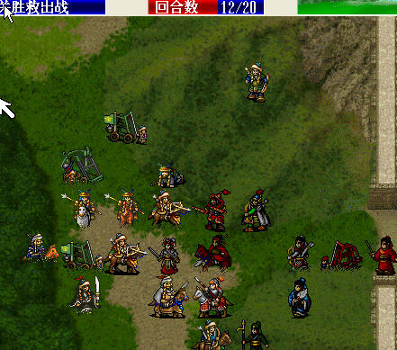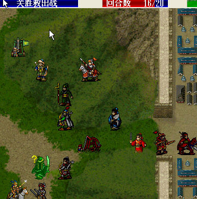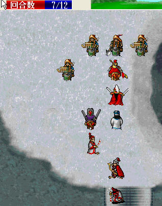 7. 在12回合后、或我军向上,触发2个敌人变友军剧情,关胜会开始逃跑,不再主动进攻。所以先不要向上。