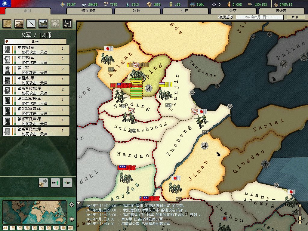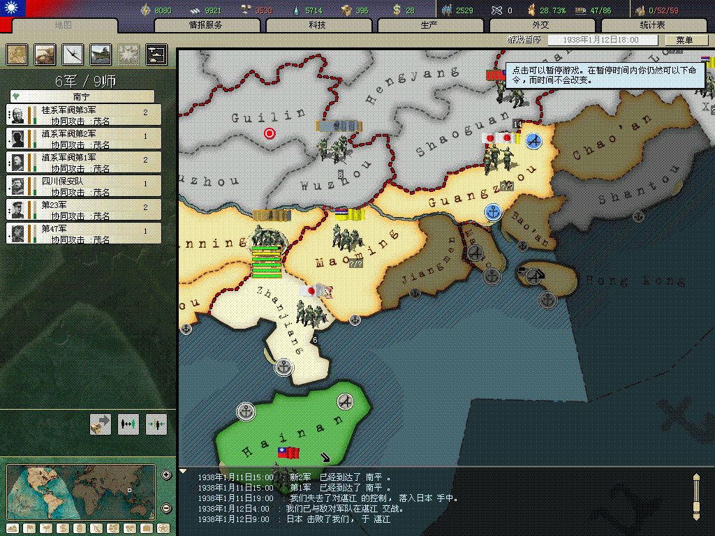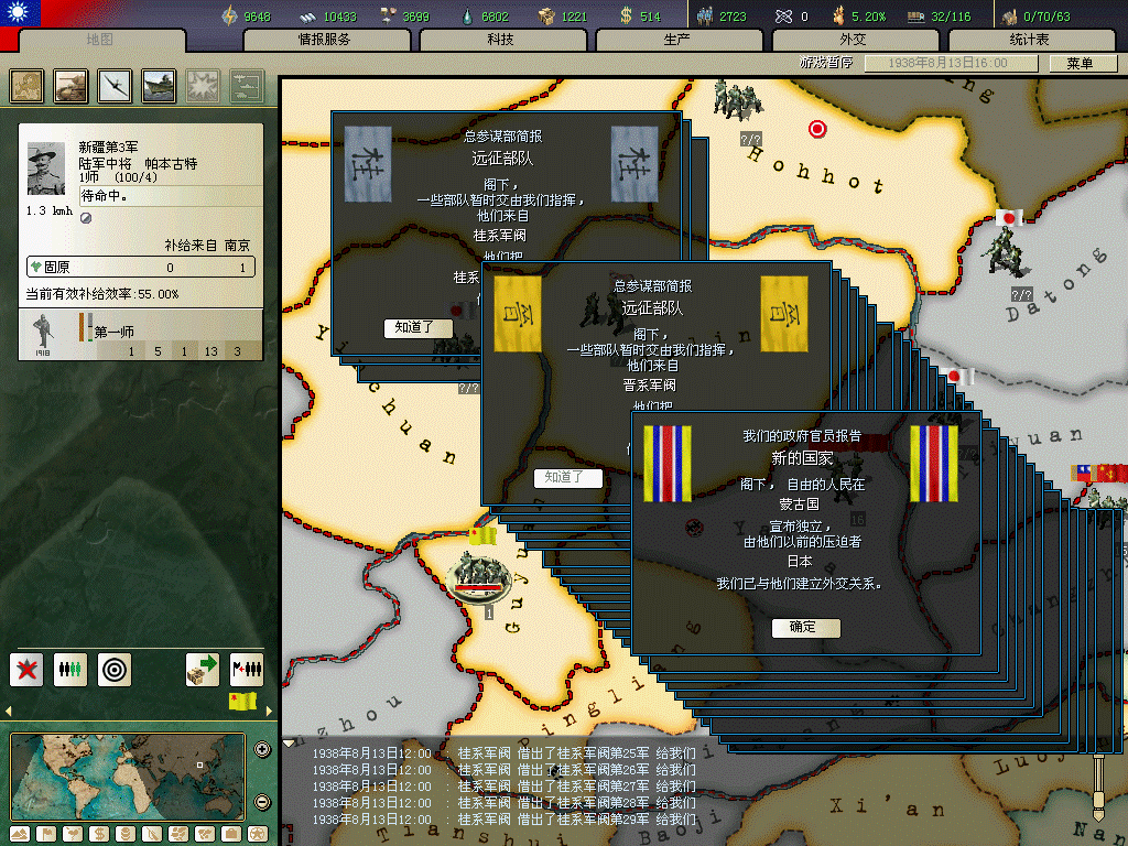 桂系第二个首都)后触发桂系求和事件。对桂系战争麻烦在于为了日后抗战,舍不得围歼桂系部队,如不能触发时间将很头痛。另外好象不能先宣桂系,不然他死活不降,日本和其他军阀很可能一起宣你,我就因为宣了桂系导致日本提早入侵,而且没统一战线。国土沦丧啊