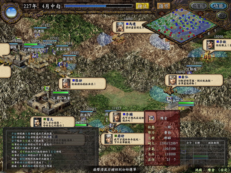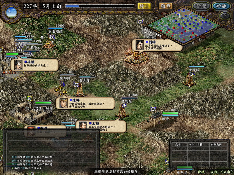 以诸葛亮第1次北伐为背景,此时,诸葛亮已收得姜维,孟达还没反魏,司马懿还在宛城,蜀汉大军在武都,是按诸葛亮的取陇西而进,还是走魏延所说的子午谷?为了最大还原历史背景,蜀汉8城内政全为1,库存钱粮只够1年之用,在无法得到后勤保障下,蜀汉唯一的希望就是——北伐!各位还等什么快下剧本体会诸葛丞相的艰辛吧。