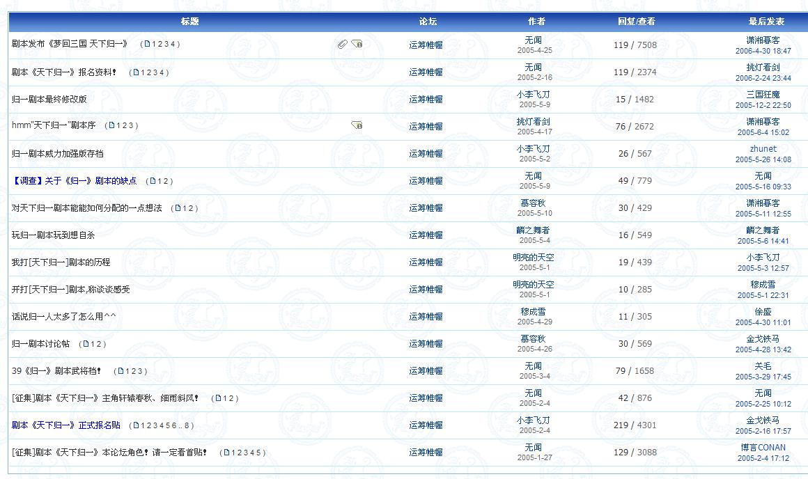 现在活跃在运筹的似乎已经没几个了,确定人手够的话,偶想试试,偶似乎只能做做录入武将姓名数据和名将补丁这类工作了,剧本MS也会一点,不过还没做过一个像样的剧本,不能算