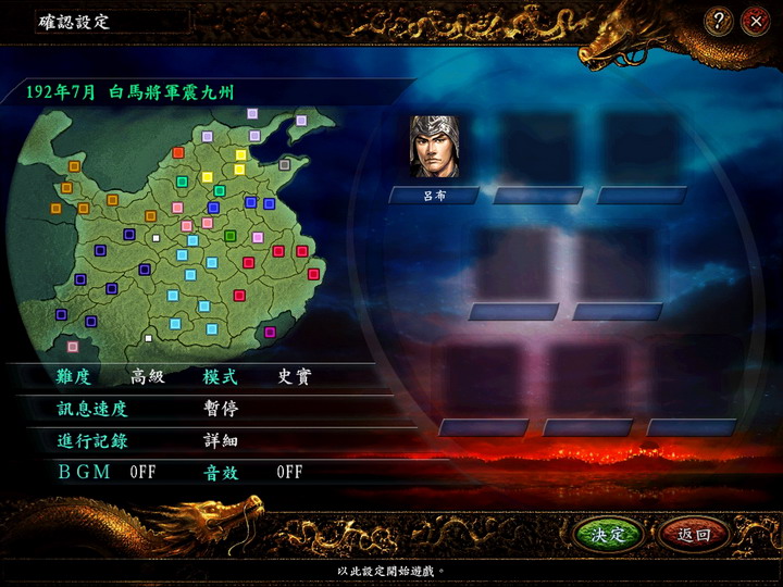 所有设施大幅提高恢复度、耐久度,除吕布及一城势力外,其他城市内政全满