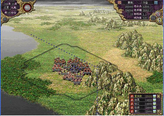 诸葛丞相运筹帷幄,六出祁山,可是皆无功而返,只因为粮食的输送问题,原作中无法体现军粮输送的重要性,而本人修改了军粮收支和城市开发上限还有人口上限如果不通过输送,一个城是绝对养不起100000士兵的,但是全局测试下来,只增加了难度,只要非前线城市重视输送,就不会出现赤字,如果不重视输送那么一下子军粮为0,那敌人就会立刻来攻打,至于资金收入来说,本人稍微减少了收入,只因为了增加难度,因为这样,玩家可以开动脑筋去治理一个城(比如通过贸易,买卖军粮来赚钱,或是掠夺)而不是像原来的一样只要等啊等,金钱会自动增加。