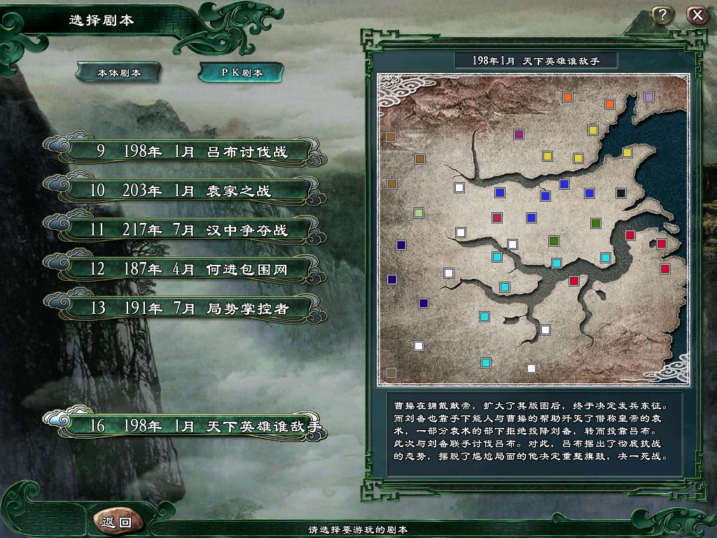 玩三国志11也很久了,因为对吕布的喜爱,所以做了《天下英雄谁敌手》这个剧本,望大家多给意见。
