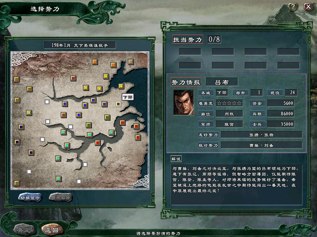 应该没有198年的吕布难吧。。毕竟人比较多,而且直接放到下邳,不像198年版本还要照顾小沛