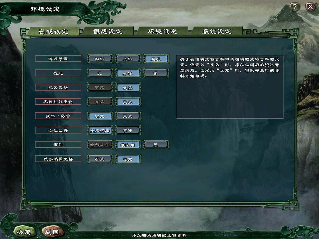 1 对部分各武将的能力及适性多做了修改如:赵云特技改为枪神,陈宫特技改为火神,吕布统率增强等。