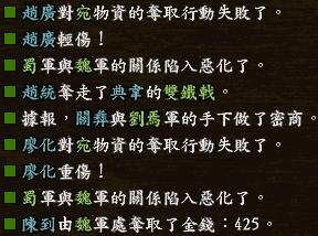 今天玩39时很郁闷啊 我趁着袁术 孙策 何进...五家攻打曹操时中渔翁得利抢到了陈留和一大票武将(281剧本 一大群牛B的存在啊)可是就这个让我背负巨额的债务啊 偶就想起某位大大说说的 强盗是一份很有前途的事业啊 就拉着一大票汉子突袭许昌,寿春,洛阳抢得金银财宝无数啊 另加今天我发帖的原因 纪灵的三尖刀被我抢了 王允的七星剑也到我手里(是不是他手里抢的有点疑问没看清)外加一把+1武的刀 难道39的强盗都这么狠连随身的武器都能偷???????那我要注意拉 偶宝库都是找来的 偷来的 抢来的 万一被被偷了咋办呢?