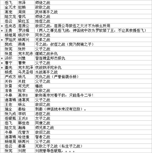 平原 杨再兴 何元庆 诸葛英 余化龙 柴桂 曹成 王善 罗辉 戚方