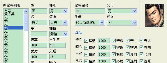 无论如何修改都只有最前面两个马晕和黄月应出现,我自己修改的名字总是保存不了,重新读取时都显示为无,但资料有显示。游戏中也只有马黄2人,没有其他新武将可供选择,怎么回事我要疯了!!