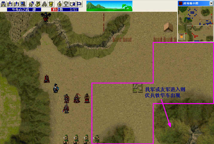 4.第11回合友军把金兀术干掉,他在河中重生(如果让他自己逃到河边一来花时间二来多出曹荣两人要打),谷中中伏敌军纷纷逃跑