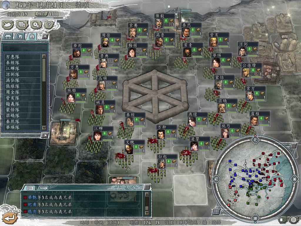 前几天看到乱射土垒同时击退自己部队也可获技巧P,受此启发,弄了个六边形的土垒,29个S级弓手,每回合最高可得2030点技巧P,如果左下的军乐台换成弓手的话,就是2100了,当然,这只是理论上的。。。。。。