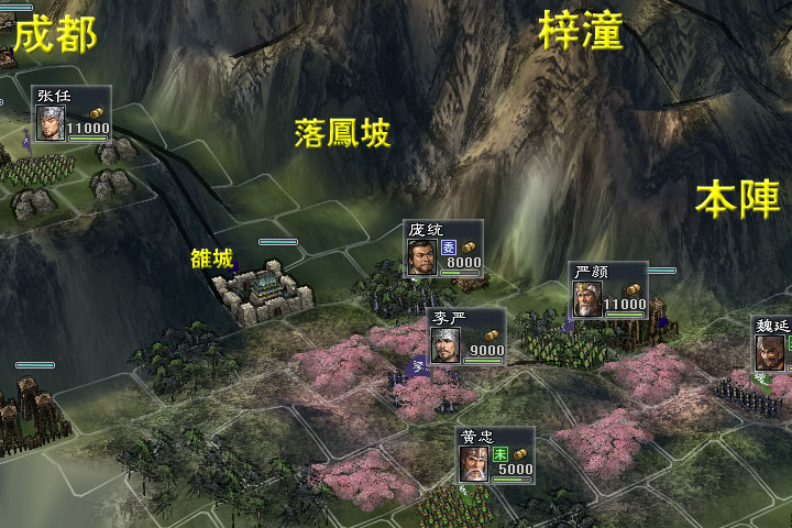 规则:不许内政,已经出来的部队不许回城,不许攻击成都、绵竹关以外的其他据点。部队被击破武将自行回城后,可领兵出城(只可执行“出阵”)。