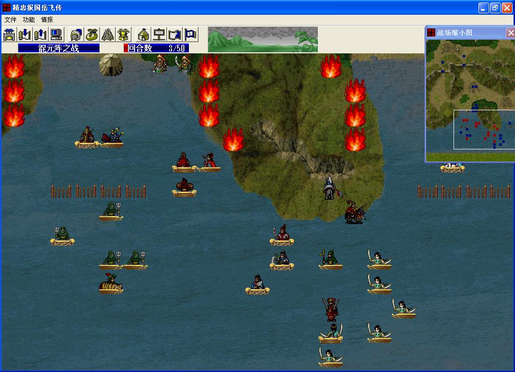 由于吕布兄练人的关系,杨虎等人等级太低没出场。1~5 回合完成开始布局。