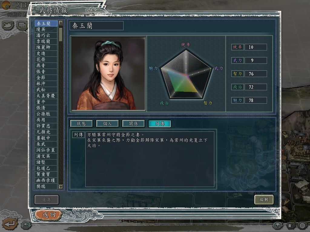 水浒剧本,选梁山灭了方腊(其时晁盖已死,宋江为君王)。正无聊间,忽一日发现手下降将秦玉兰端庄秀丽,貌美如花,心甚慕之。一看资料偏偏是有夫之妇,于是.......