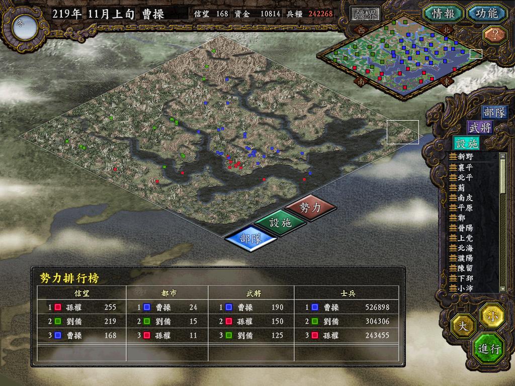 由于此剧本大大削弱了兵法的威力,兵力就显得更为重要,另外信望优势也没有那么明显了,因此曹操初始多的20W兵力对另两家构成的威胁是不是太大了?!尤其作为吴国,要防守的地方太多,兵力很难集结,武将也没有蜀国五虎 ...