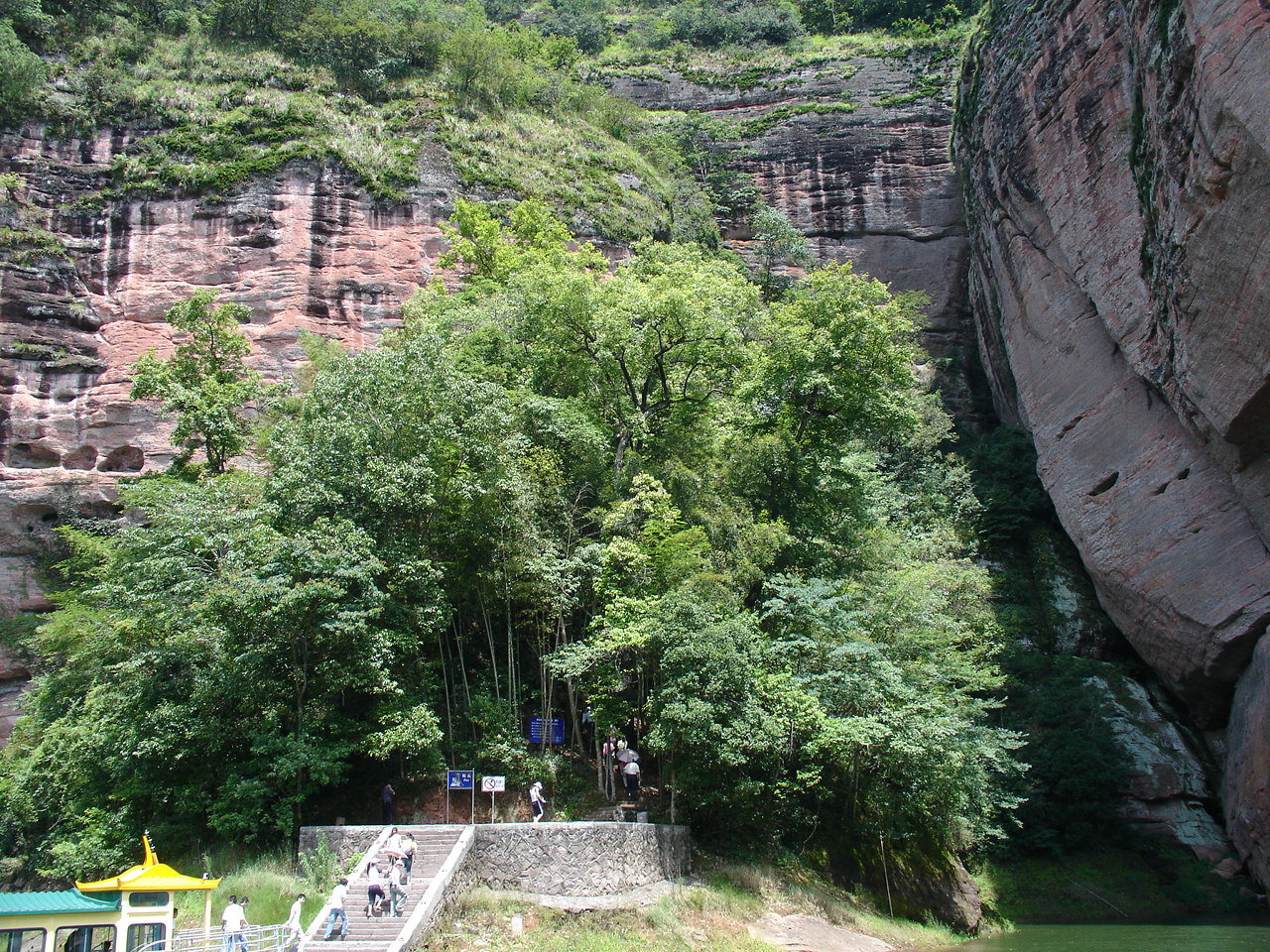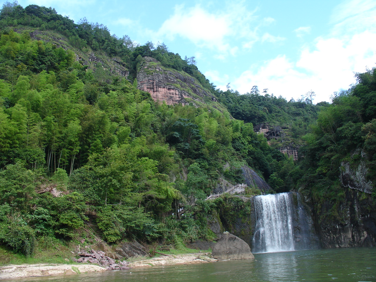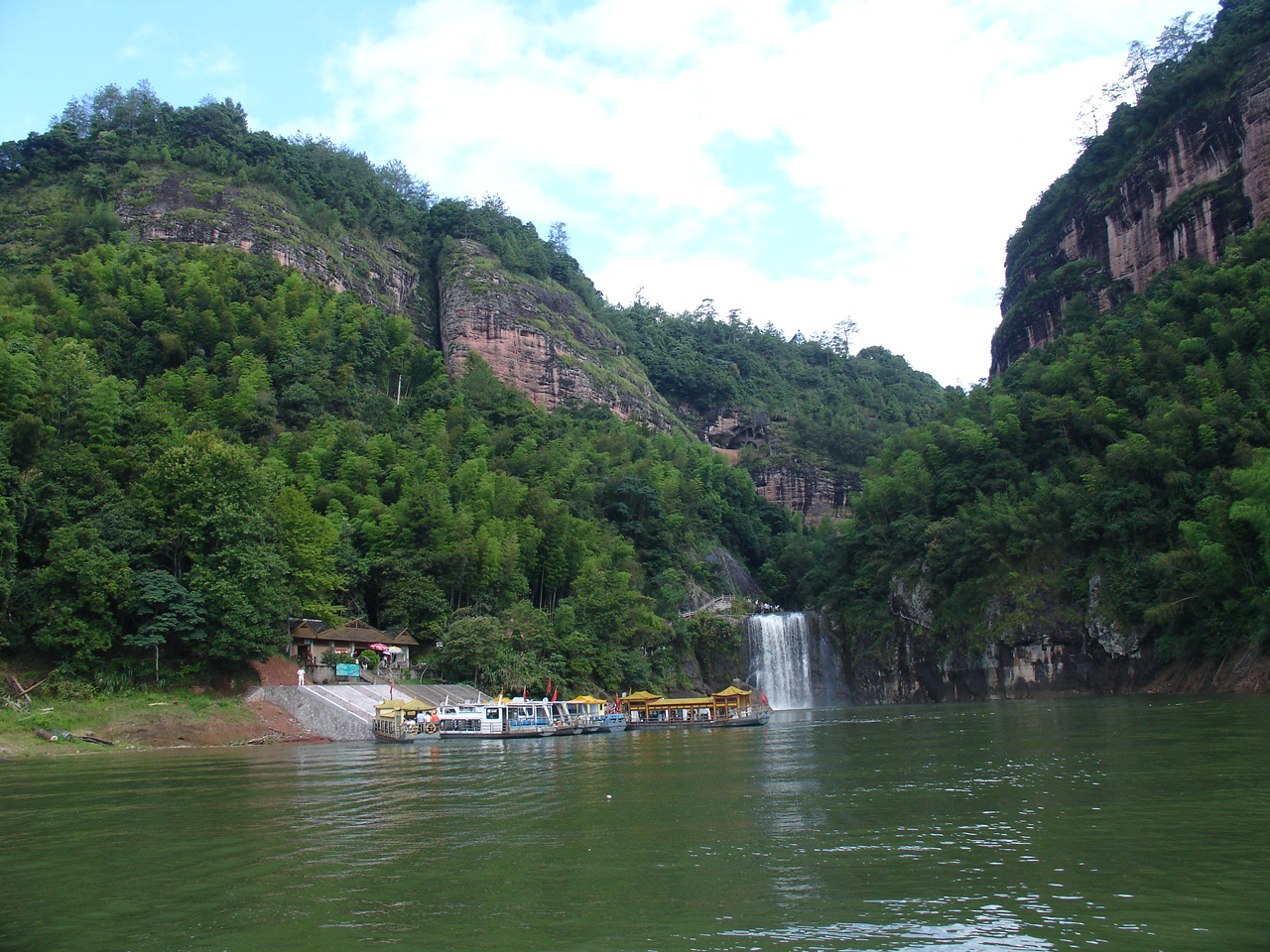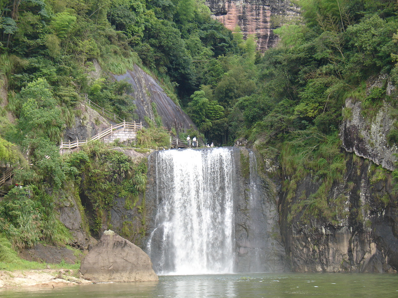 乘船前往第一个景点 是座小岛 岛上有瀑布和悬空寺 甘露寺吧!!