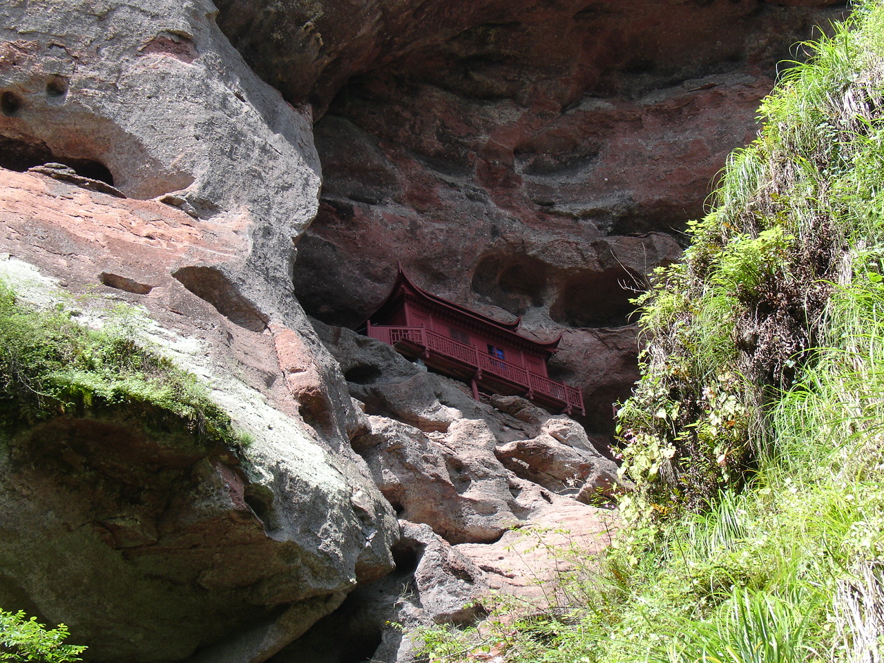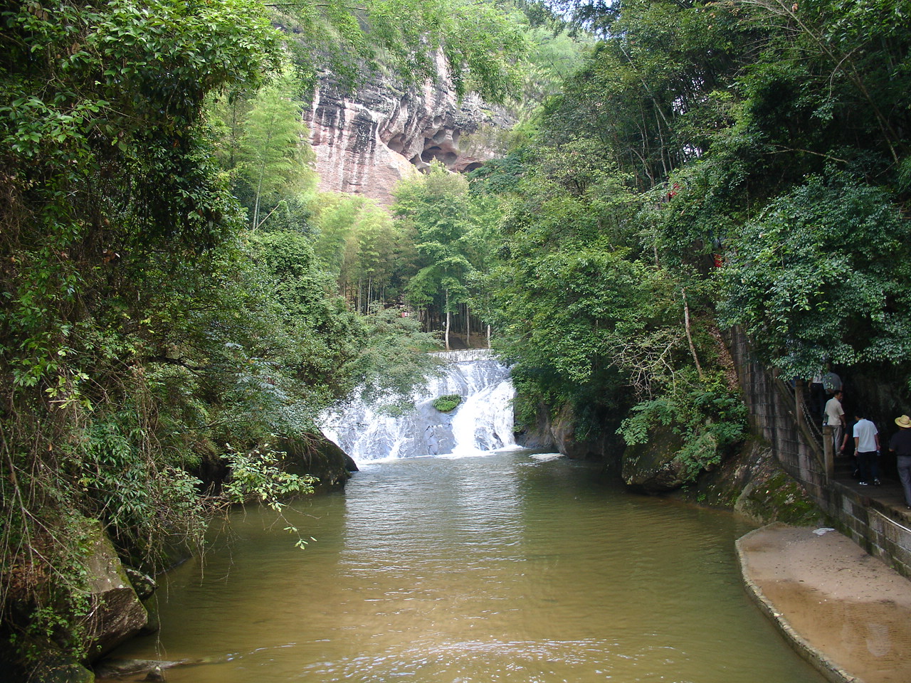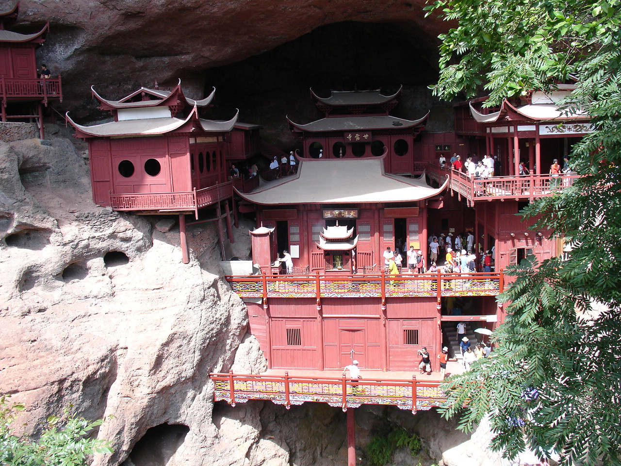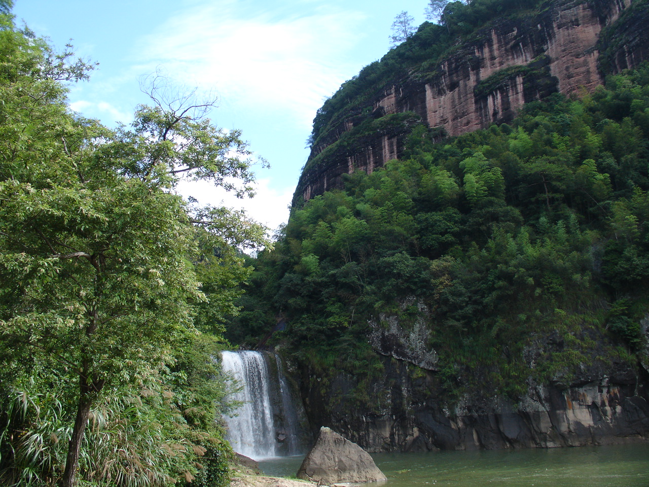 乘船前往第一个景点 是座小岛 岛上有瀑布和悬空寺 甘露寺吧!!