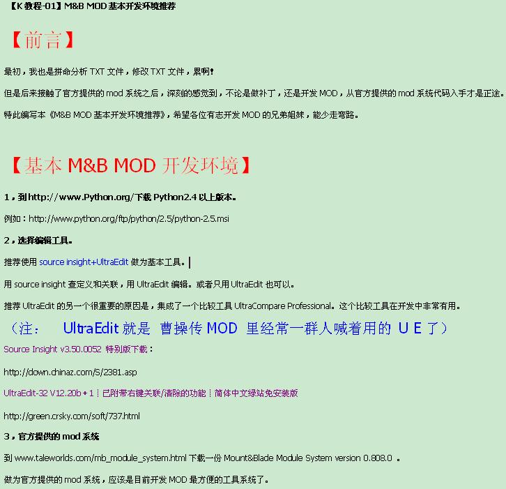 » 【K教程-01】M&B MOD基本开发环境推荐