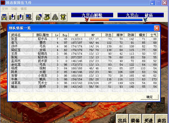 岳 飞:4级枪,1级甲,踏雪,此装备的目的在于尽快出特技;