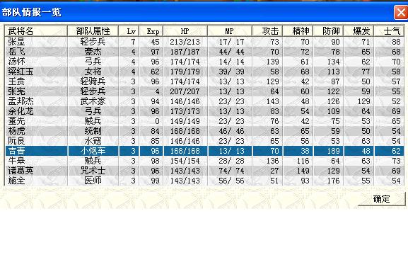 杨 虎:3级湛卢,4级衣,金山鼓,此套装主要目的是削减敌第一阵两主将HP,方便张显一击杀两人,减少所得经验;