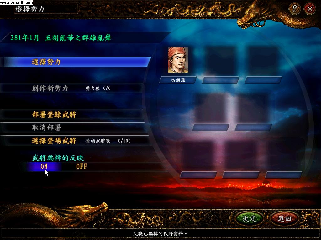 3 武将编辑的反映 选为有效 即是ON