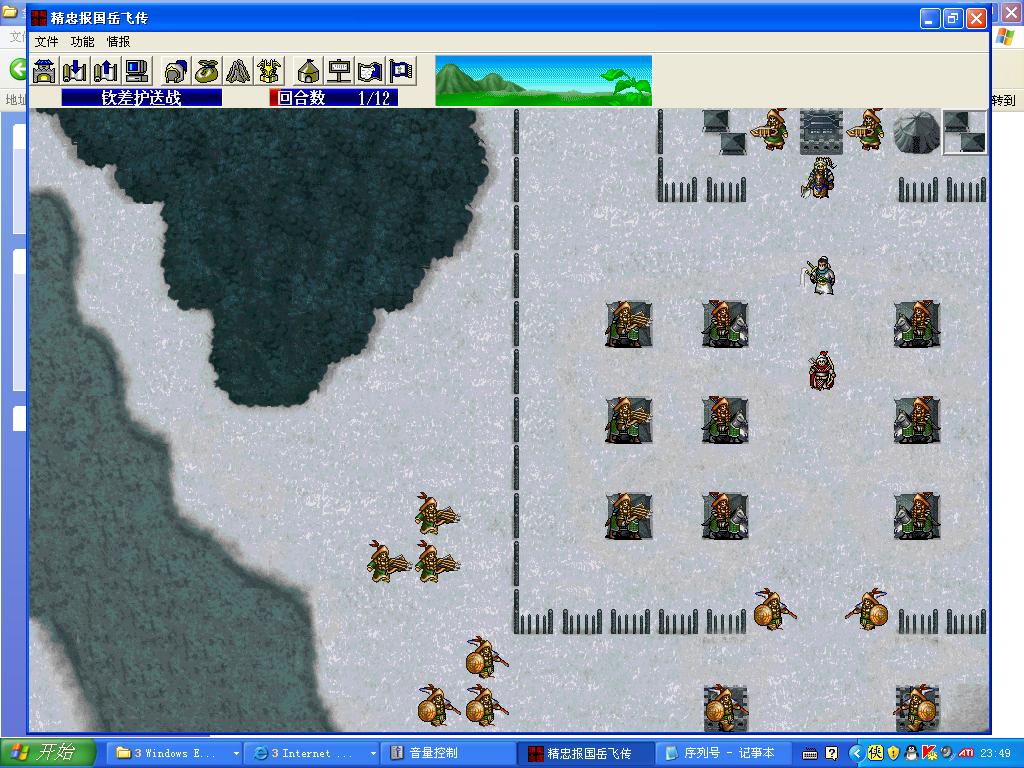 3.施全第一第2回合分别给岳飞和老牛加(身轻如燕)底3回合让吉庆和高宠在一起加攻击,然后往上攻吧,其实没有什么难度,步步为营,即可.