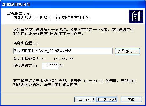 新建虚拟硬盘,VPC的虚拟机只有两个文件,一个是虚拟机配置文件,就是我们前面建的虚拟机,另一个是虚拟硬盘文件,这台虚拟机内将来装进去的内容都被放在这个文件内.